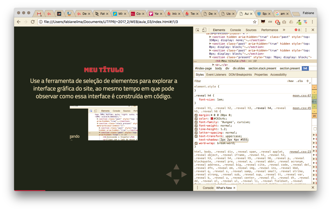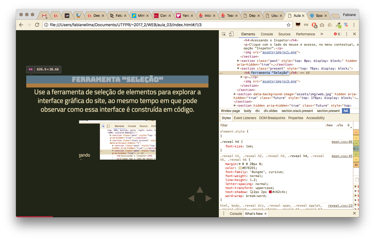 Use a ferramenta de seleção de elementos para explorar a interface gráfica do site, ao mesmo tempo em que pode observar como essa interface é construída em código.